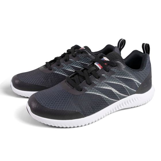 Mũi giày: Dệt cao cấp, với kiểu thiết kế in 3D từ mũi giày đến gót giày kết hợp đường nét trắng pha xám trên nền mũi giày đen, làm tăng nét đẹp đồng điệu của phần thân và đế giày tạo nên một gu thẩm mỹ vừa khoẻ mạnh, trẻ trung và thời trang.
